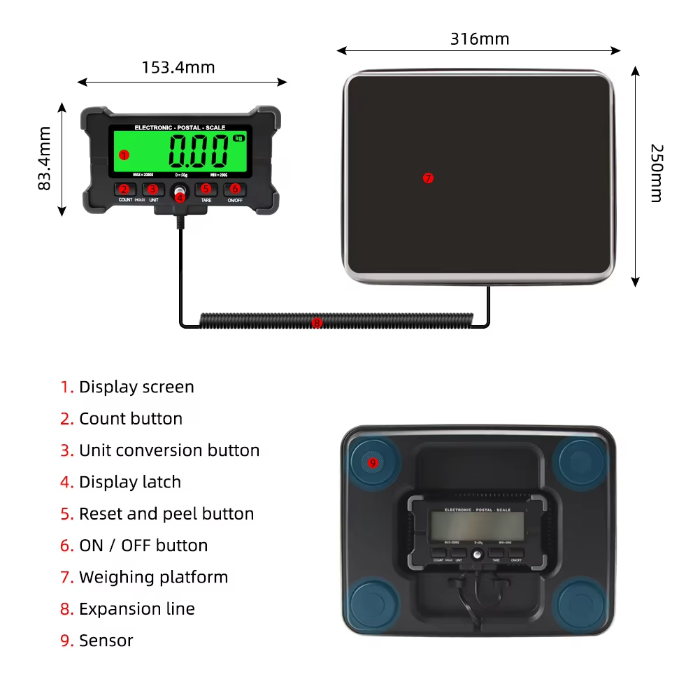 PS-21 200kg LCD Digital Large Stainless Steel Surface Scale for Multiple Scens