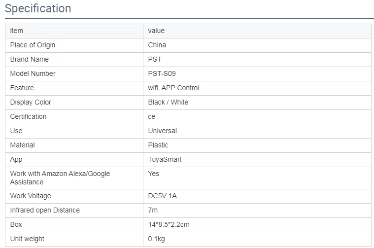 PST-S09 Hot Sale Temperature Humidity Sensor Tuya Smart WiFi IR Remote Control for Home Appliance PST-S09