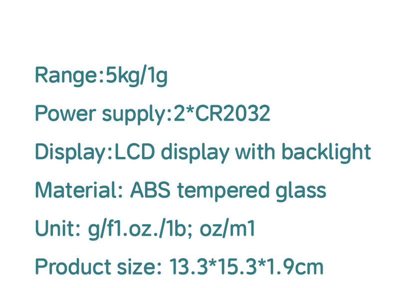 | Function | Weight Measuring, Milk volume Mode, Water volume Mode, Round LCD with backlight, Nutritional values Measuring |
