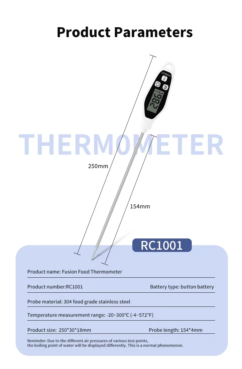 The temperature range of -20℃ to 300℃coversvariousScenariosfromrefrigerationtohigh-temperaturecookingsearchasmeasurementthelow-temperatureMixingtemperatureofingredientsvgenmakingicecreamanddeterminingtheoiltemperaturevgenfryingFrenchfriesmeetingthetemperaturemonitoringneedsofdifferentfoodprocessingprocesses