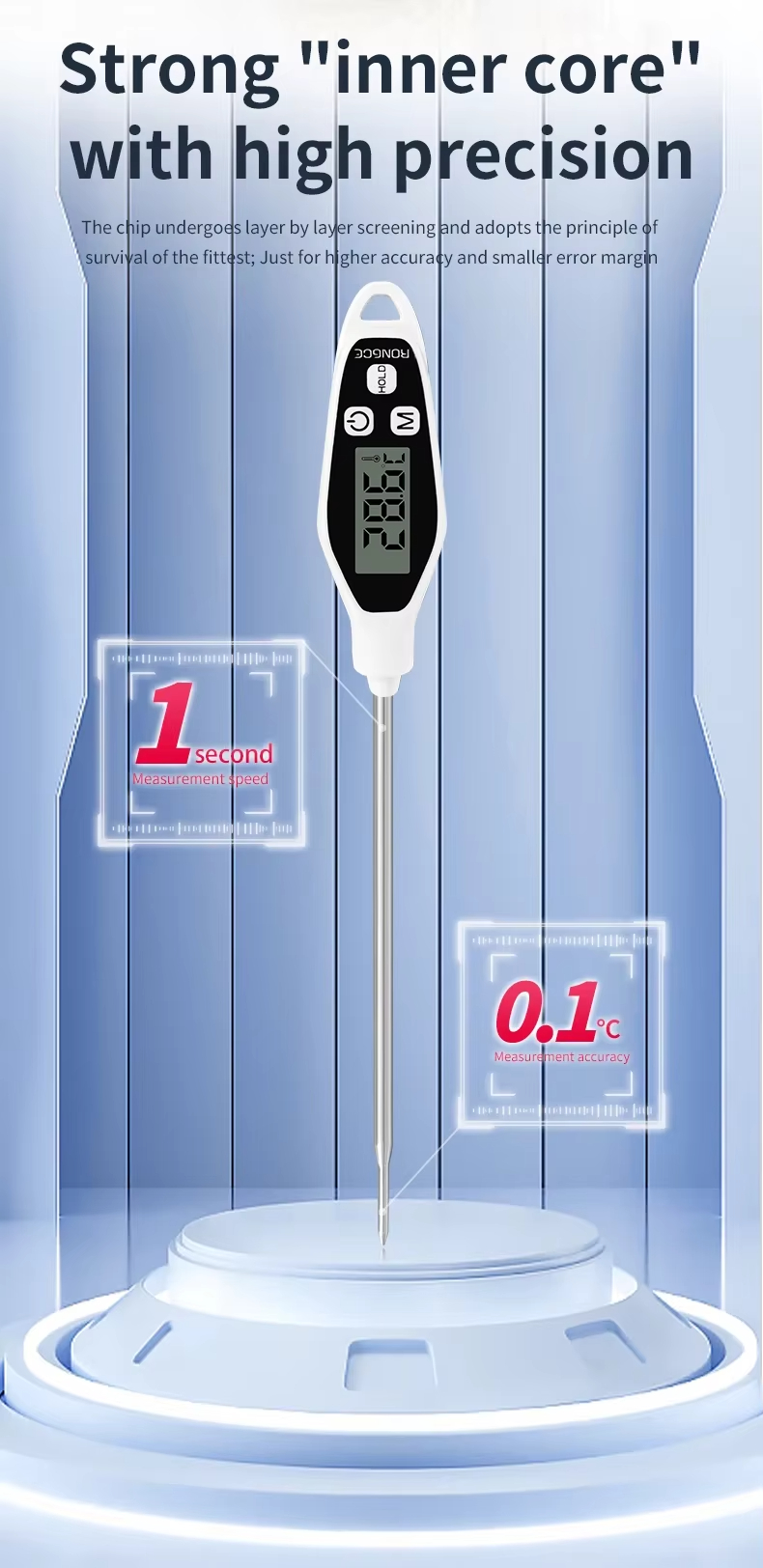 1 second temperature measurement with an accuracy of up to 0.1℃Whether it's precise control of oven temperature during macaron baking or quick knowledge of pot temperature during steak frying, it can be excellently completed, making cooking more effortless