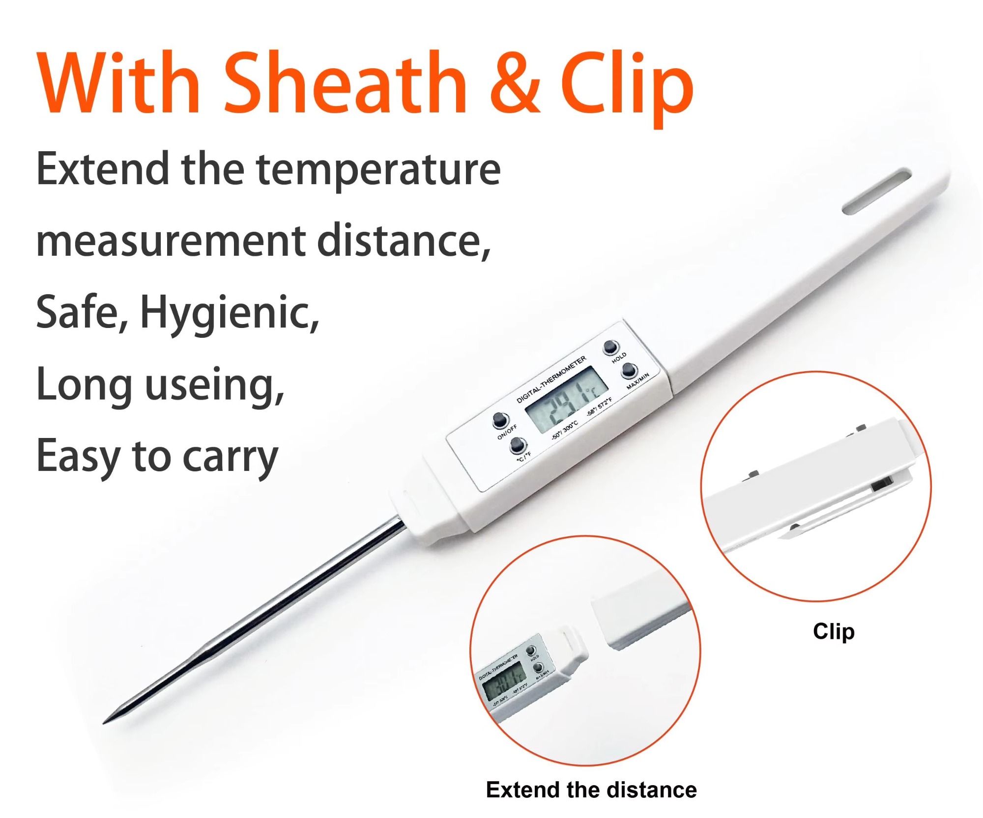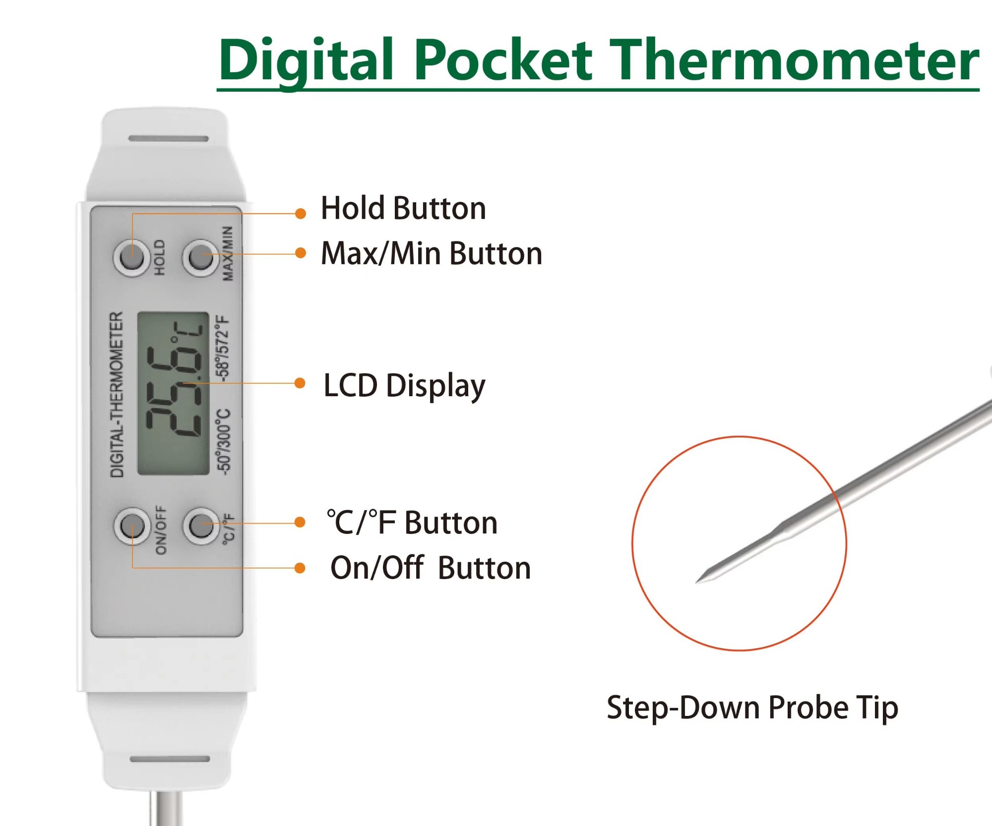 S-H03 Digital Pocket Meat Thermometer Waterproof Instant Read Kitchen Food Probe with Protective Plastic Cover