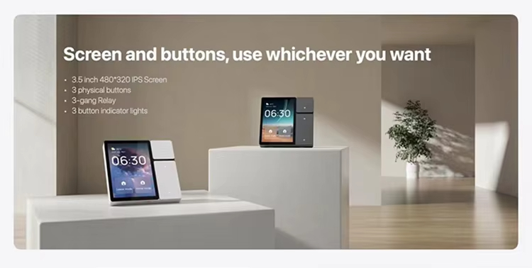 A compact yet powerful control terminal integrating a 3-gang mechanical relay with a 3.5-inch HD touchscreen.