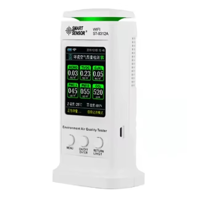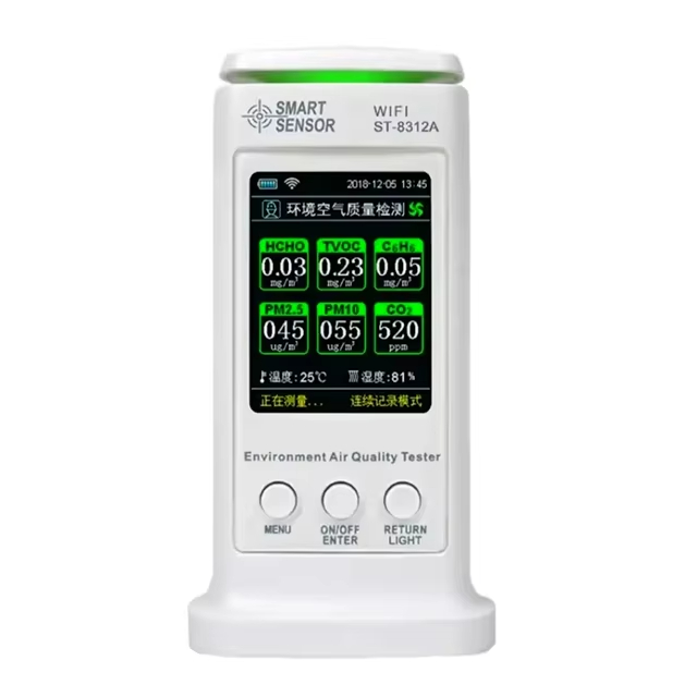 - Can measure CO2, HCHO, PM10. PM2.5. TVOC, C6H6, temperature, relative humidity in the air.