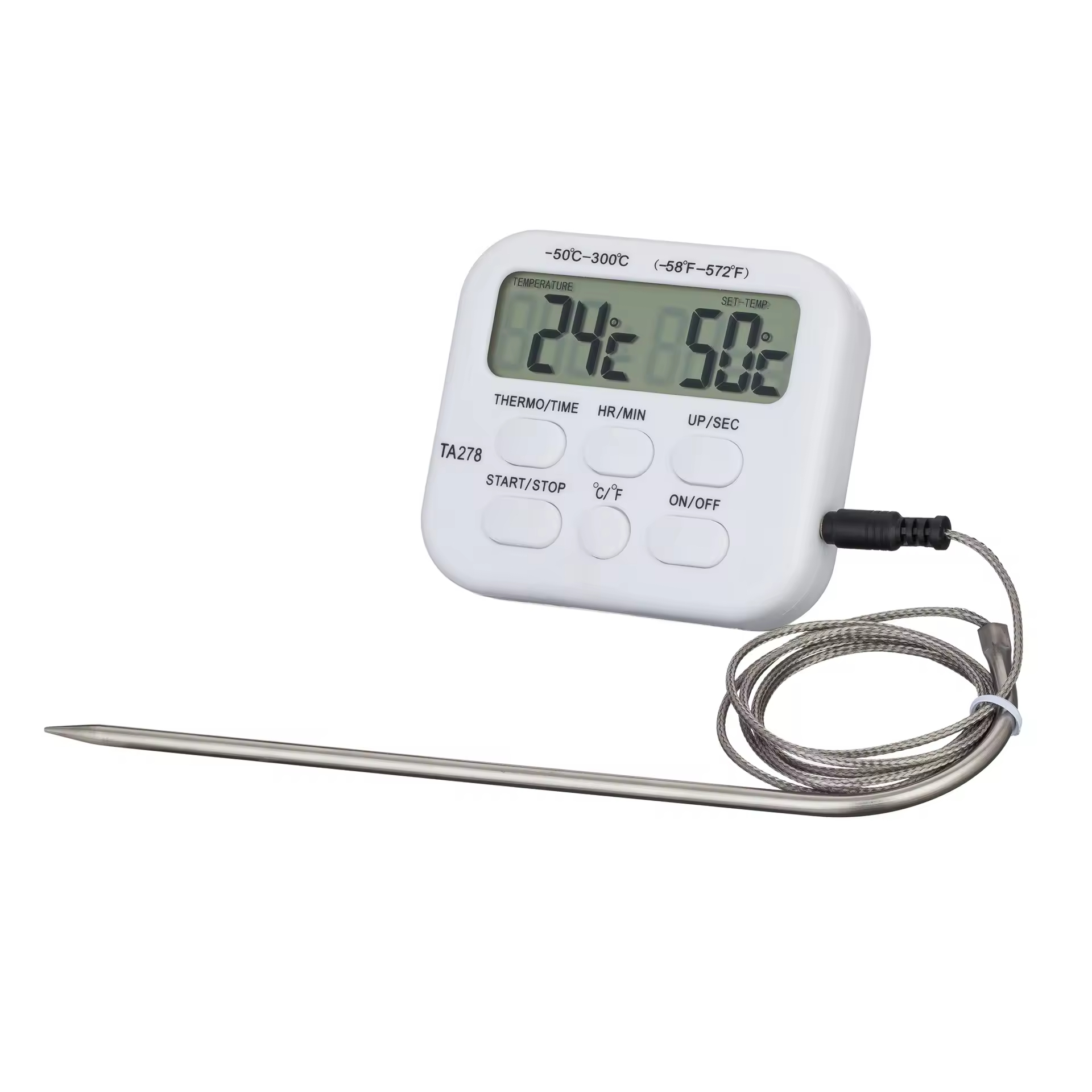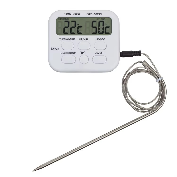 TA278 TZONE Plastic Kitchen & Barbecue Thermometer with Digital Display IP67 Waterproof Alarm Timer Function Can Be Set