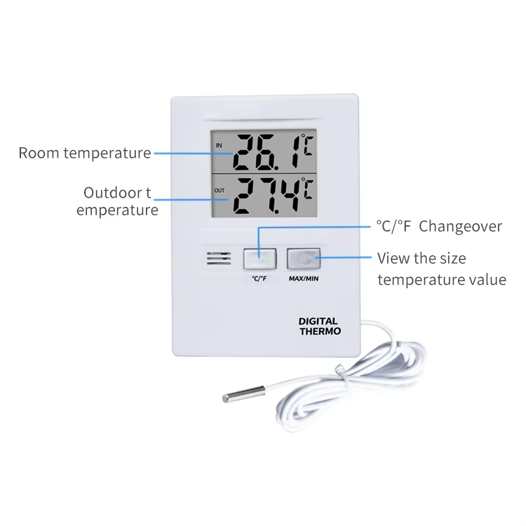 TL-8006 Real-Time Digital Thermometer LCD Display-Plastic Body Sensor Thermometer Max/Min Temperature Recording Battery Powered for Home