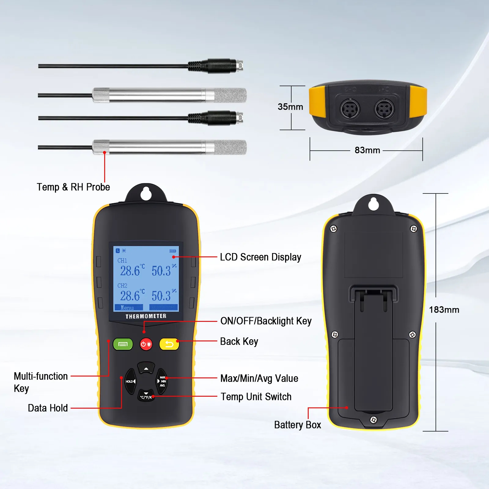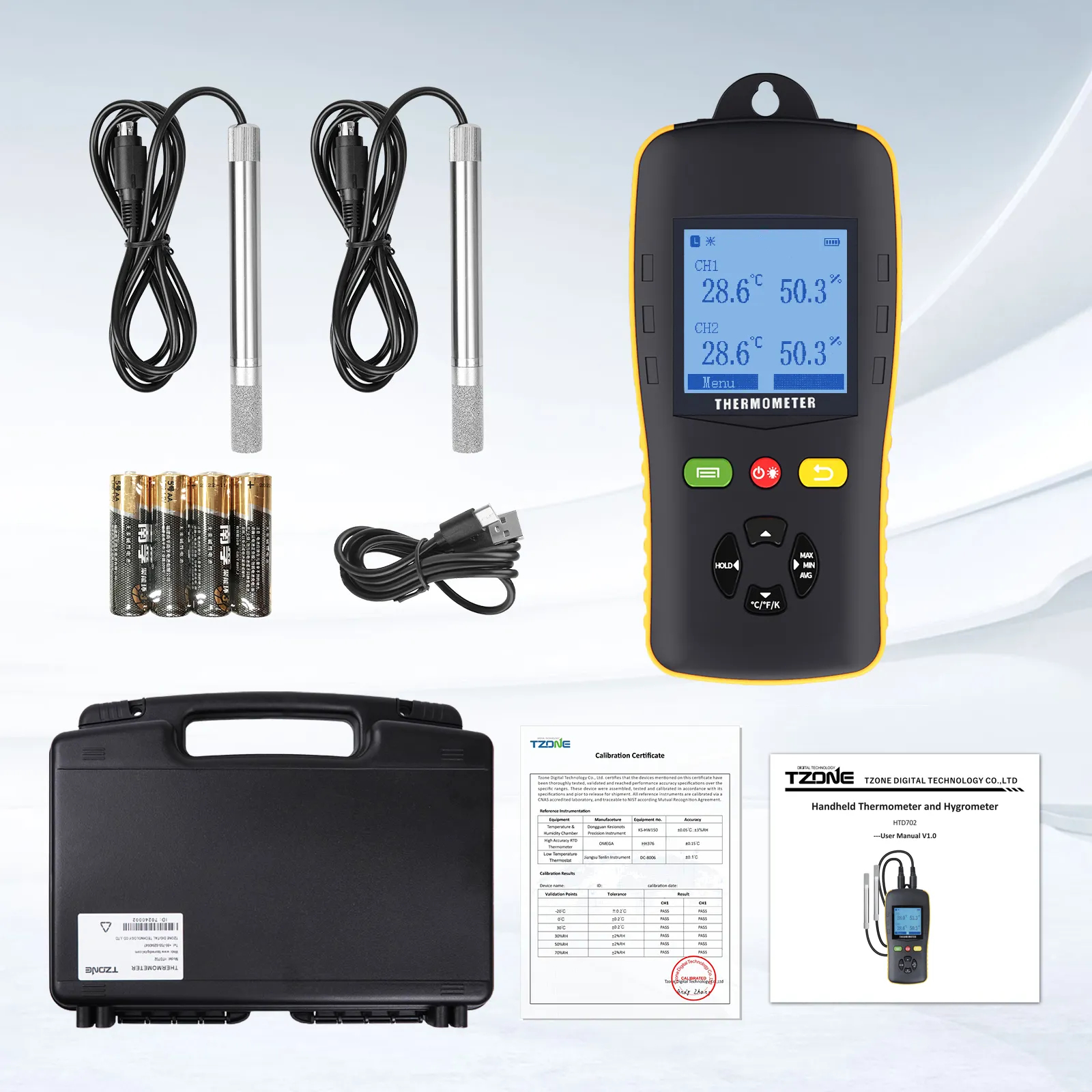 TZ-HTD702 Factory sale digital dual channel thermometer and hygrometer with SHT45 sensor probes for industrial application