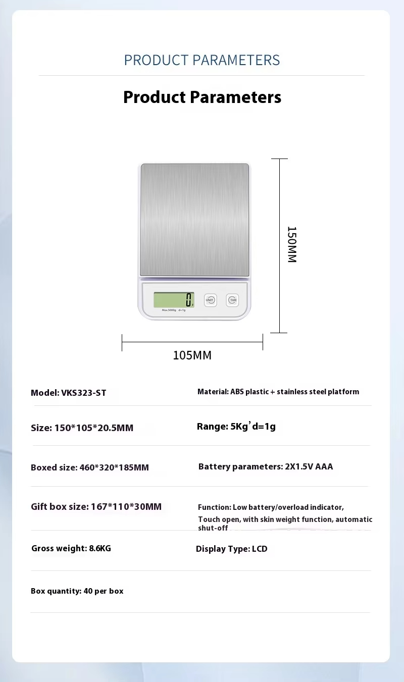 VKS323-ST 5kg/1g Smart Electronic Digital Kitchen Weight Scales - Food Scale for Food with Kitchen Gadgets Accessories Electronics Products & OEM
