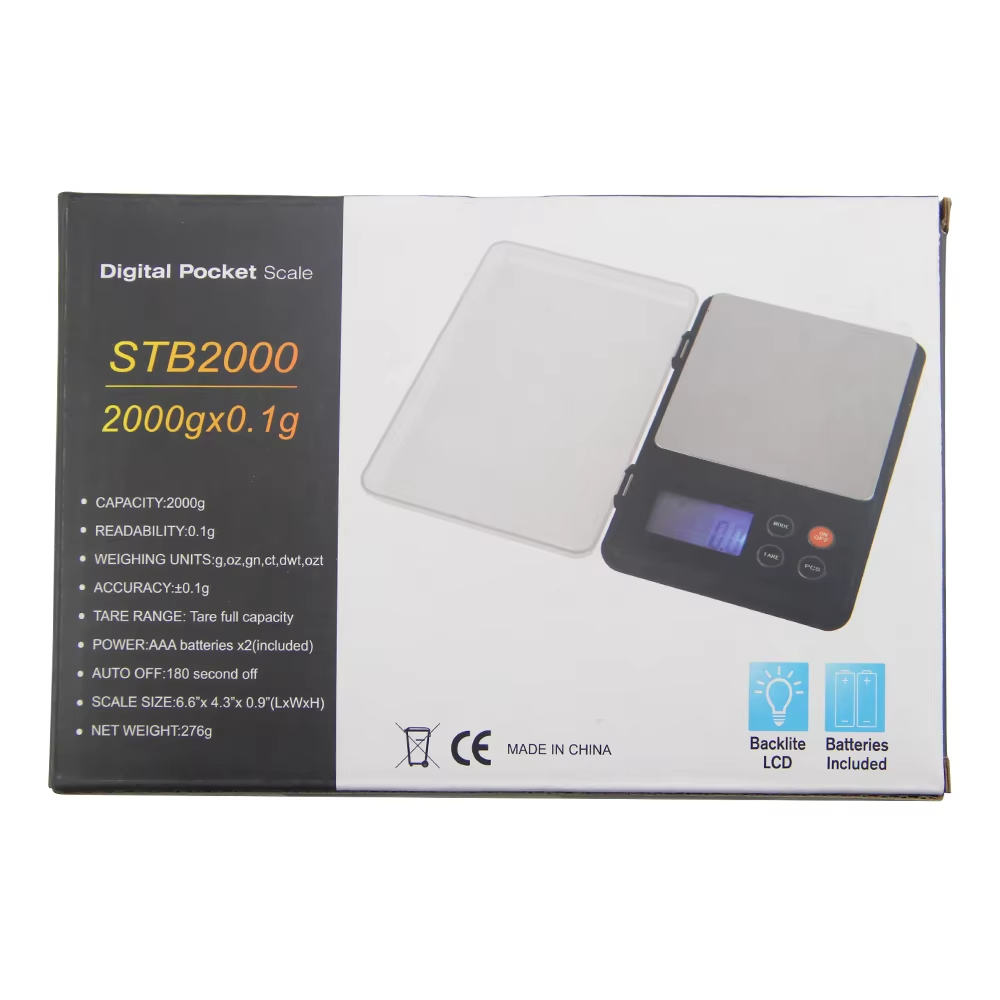 WB-2000 2kg/0.1g Digital Scale Jewel Pocket Balance Diamond Weighing Gram Kitchen Scales with BackLight