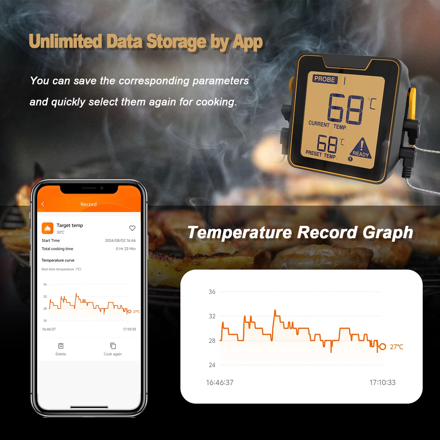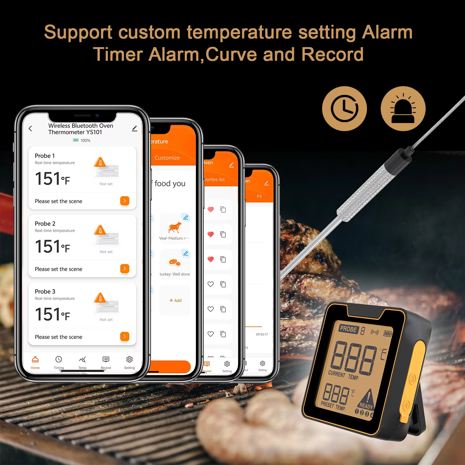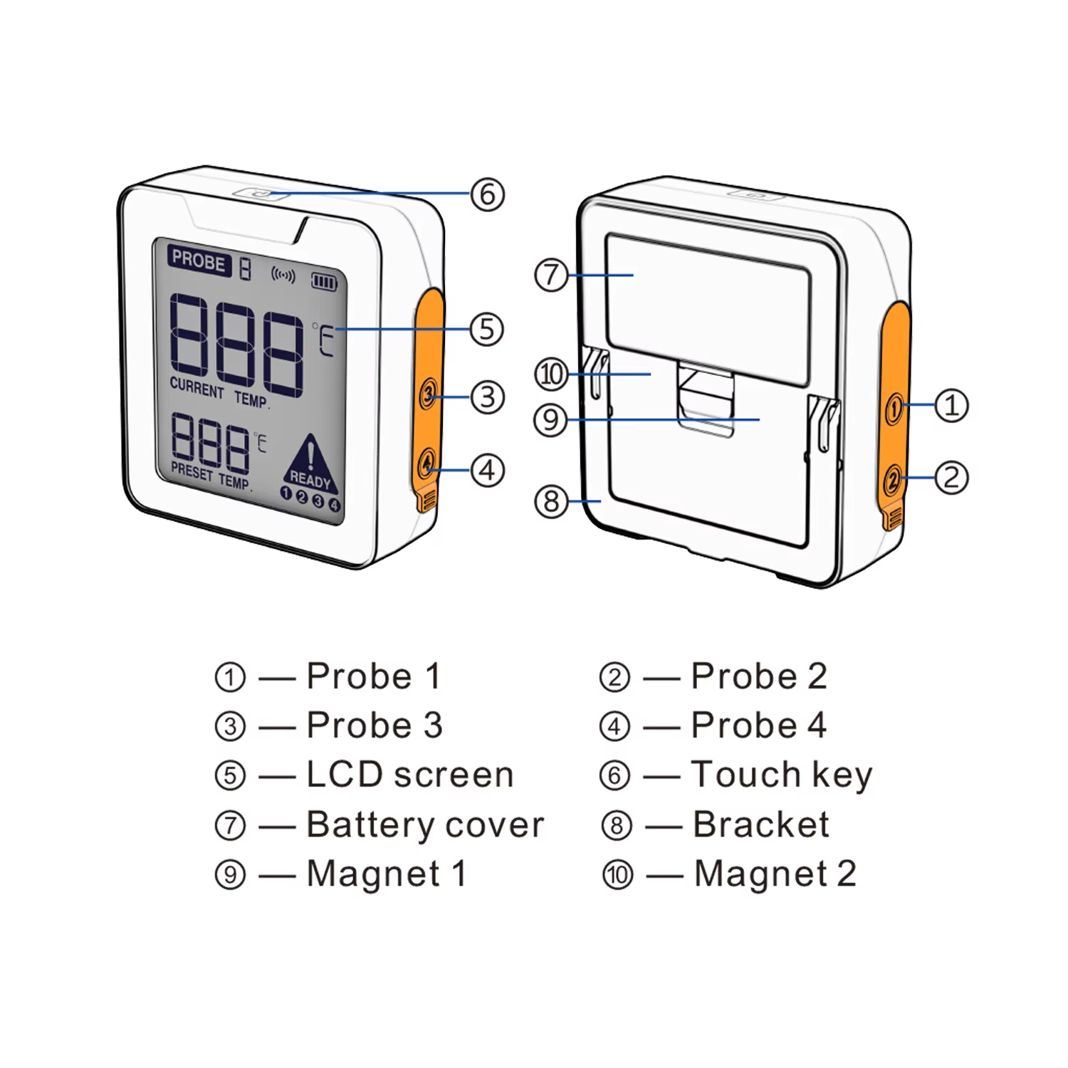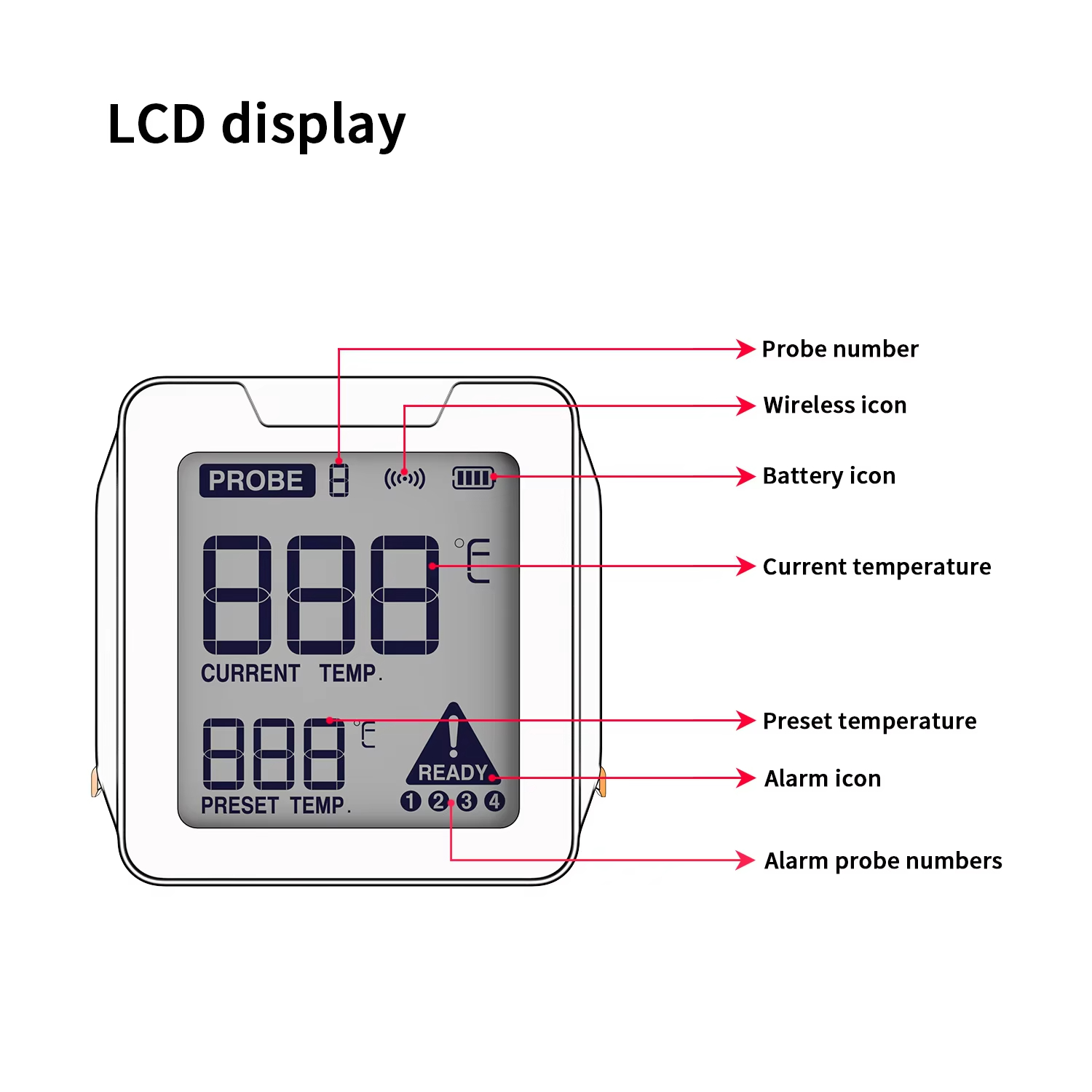 Wireless Bluetooth Digital Meat Thermometer 2/4 Probes Household Kitchen Food Alarm Thermometer Plastic Material Original Title