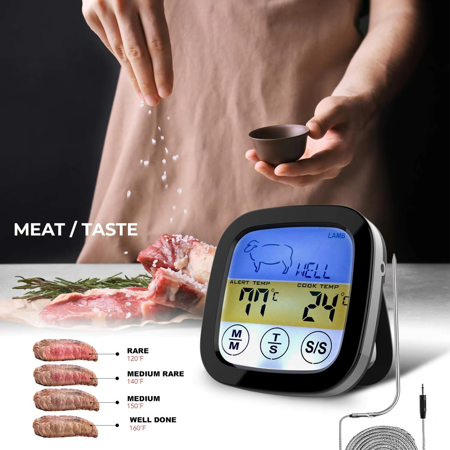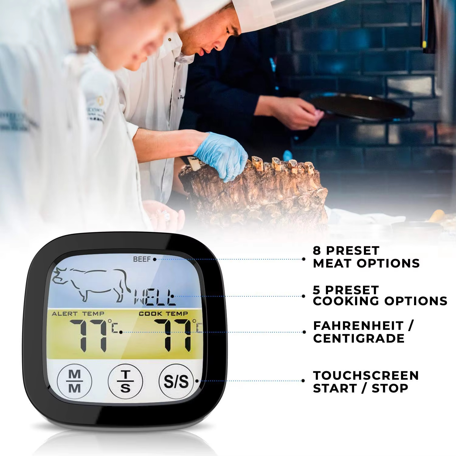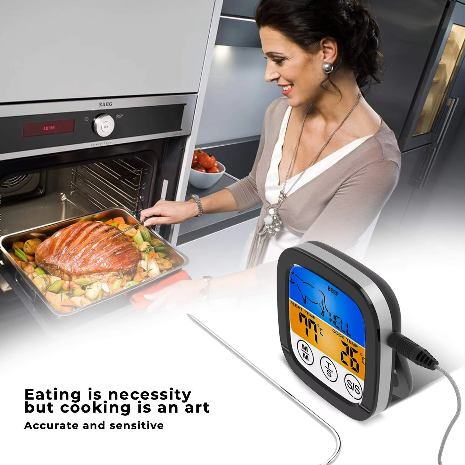 Main Functions: | ★Measurement Range:-20℃~300℃(-4℉~572℉) ★Selectable barbecue mode ★Timer:99 minutes 59 seconds ★℉/℃ switchable ★Touch screen ★Backlight ★With magnet and bracket |
