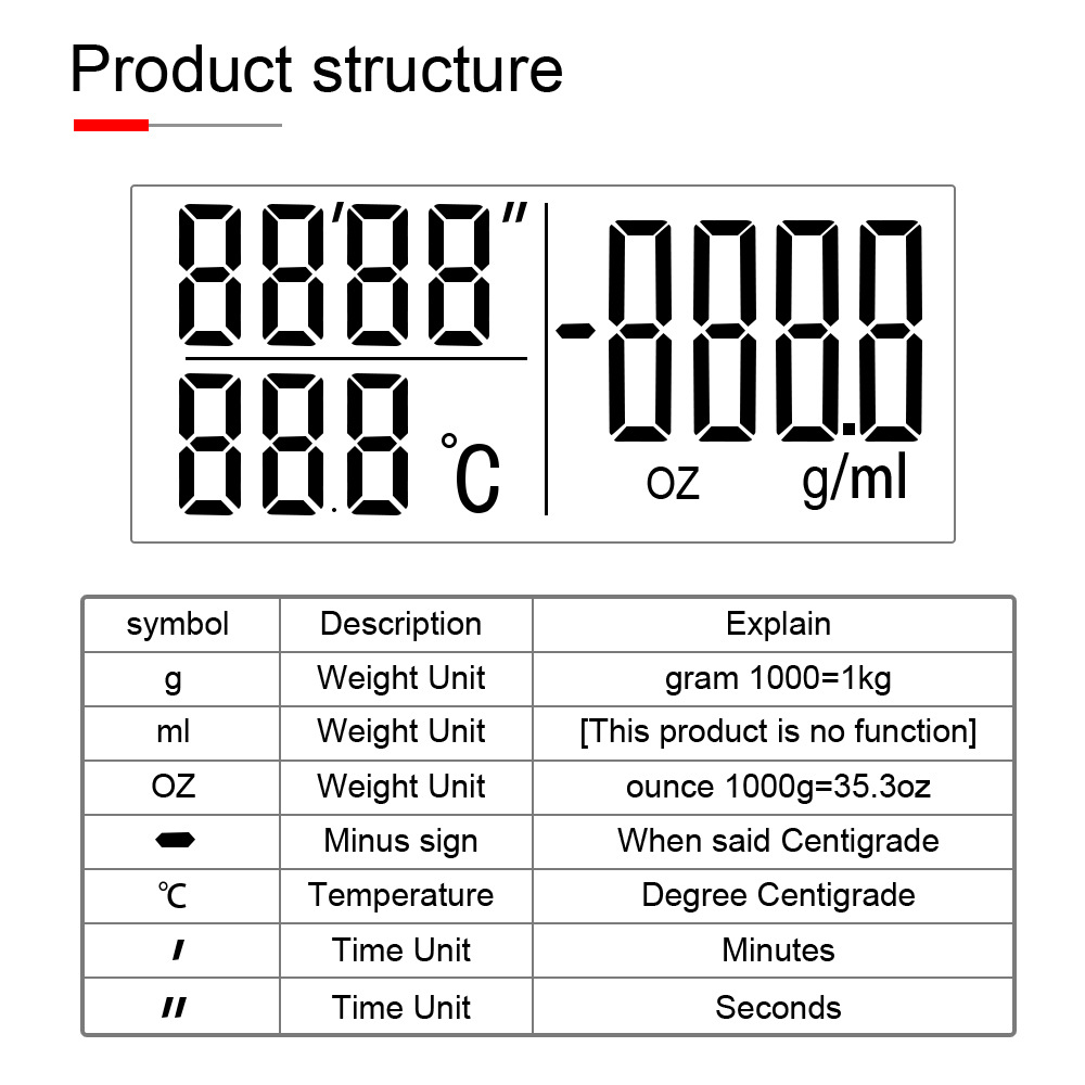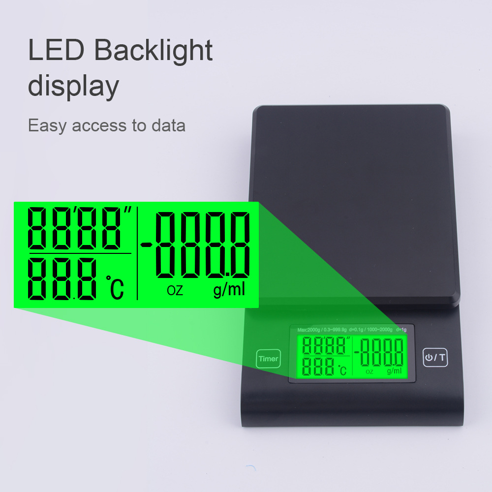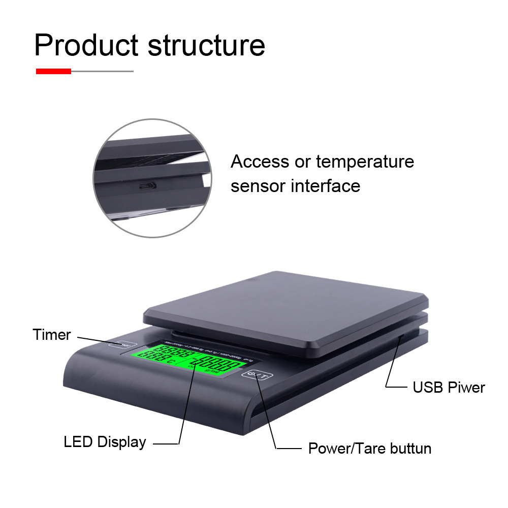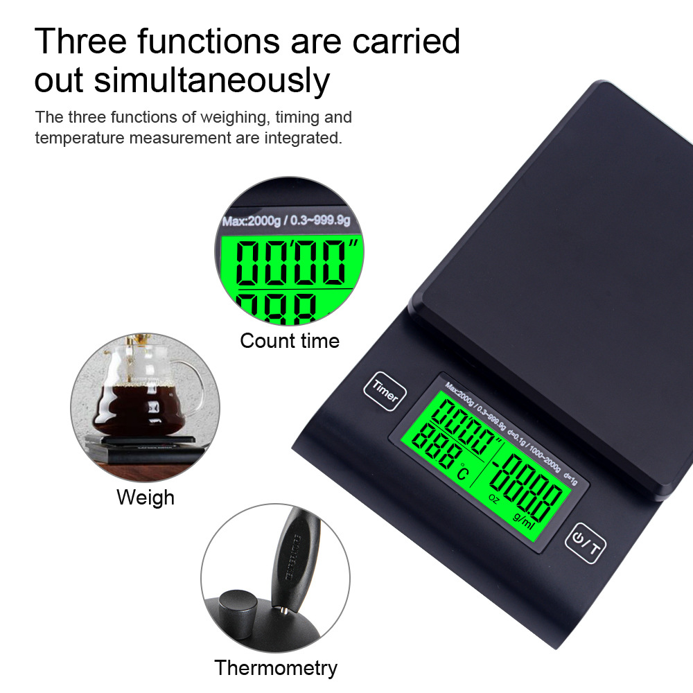 YH-304 2000g/1g Kitchen Scale With Temperature Measuring Probe and Timer Customized OEM Coffee Scale
