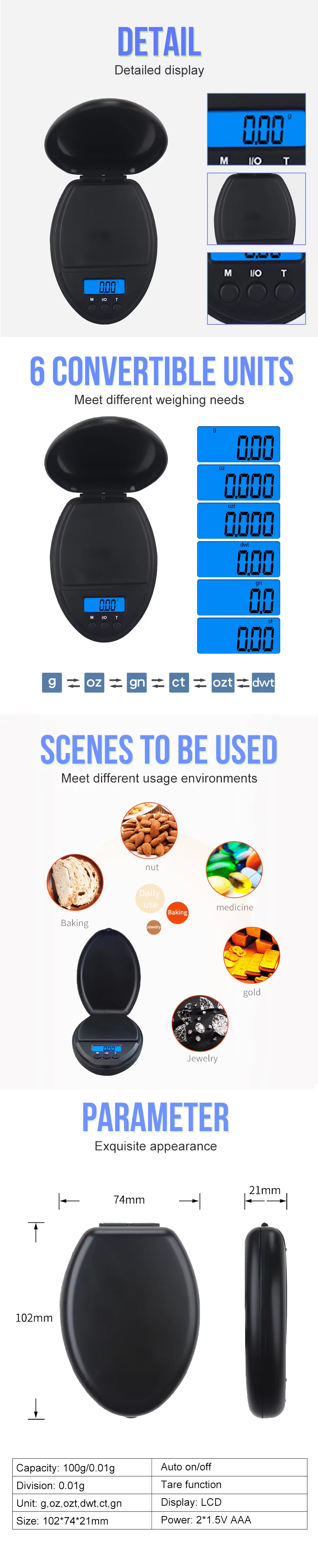 YH-FT001 100g/200gx0.01g Foldable Small Digital Pocket Jewelry Scale Electronic Polygon Weighing Diamond Scale Household Mini Karat Scale