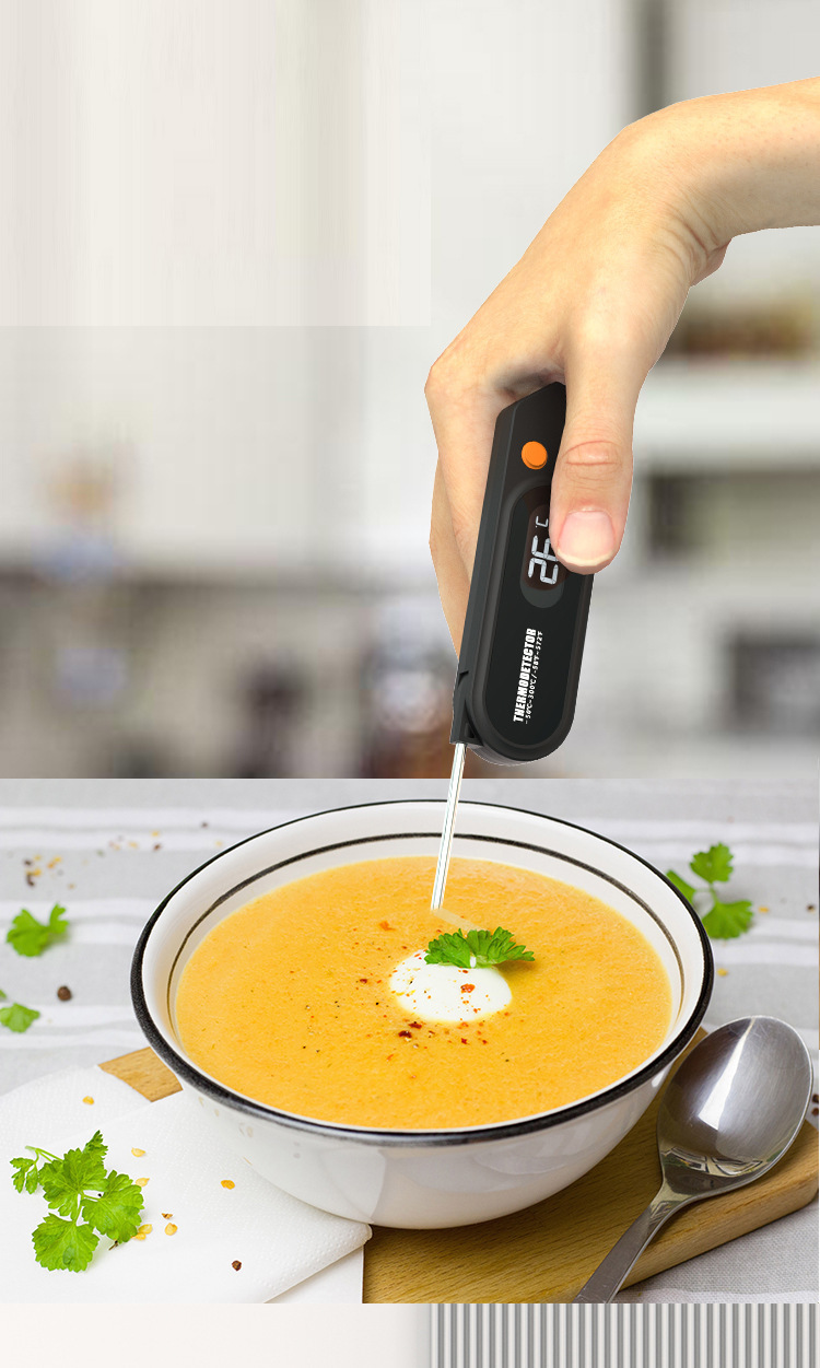 YS108 Folding Waterproof Food Thermometer with Back Magnetic Backlight VA Screen Fast Temperature Measuring Barbecue Thermometer