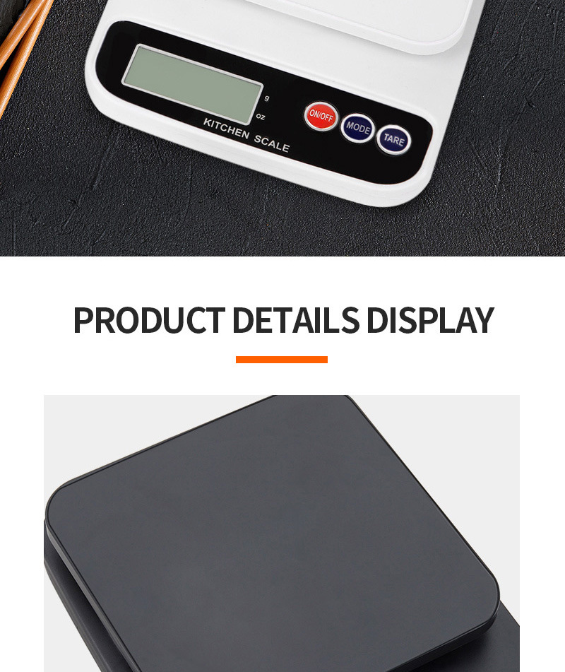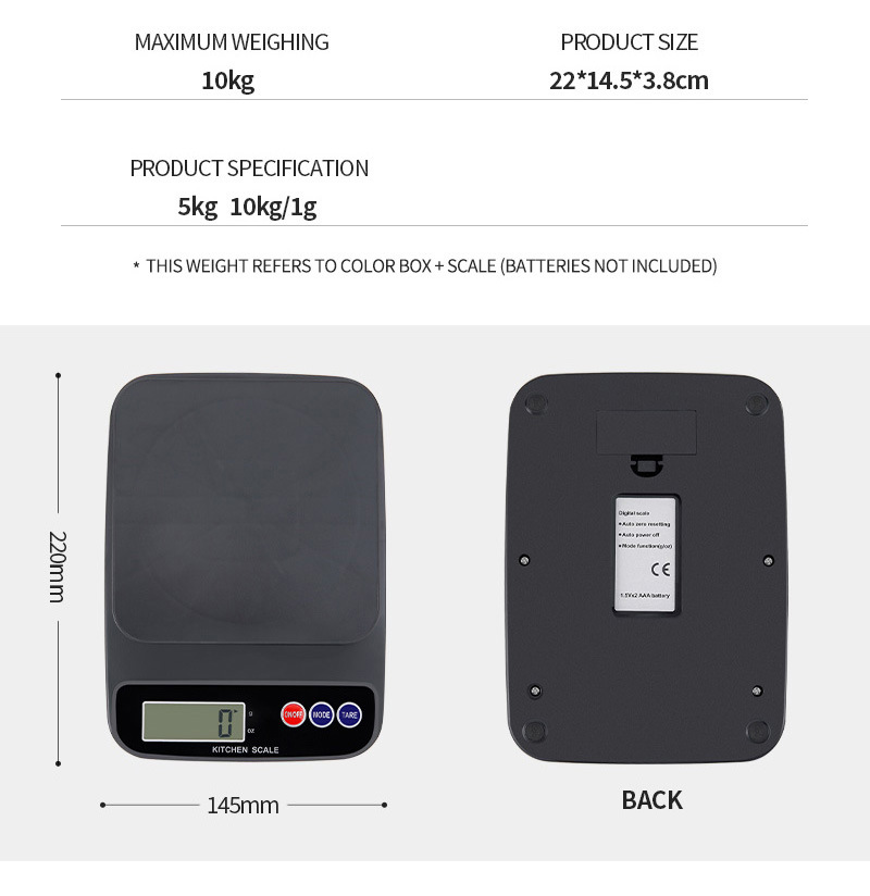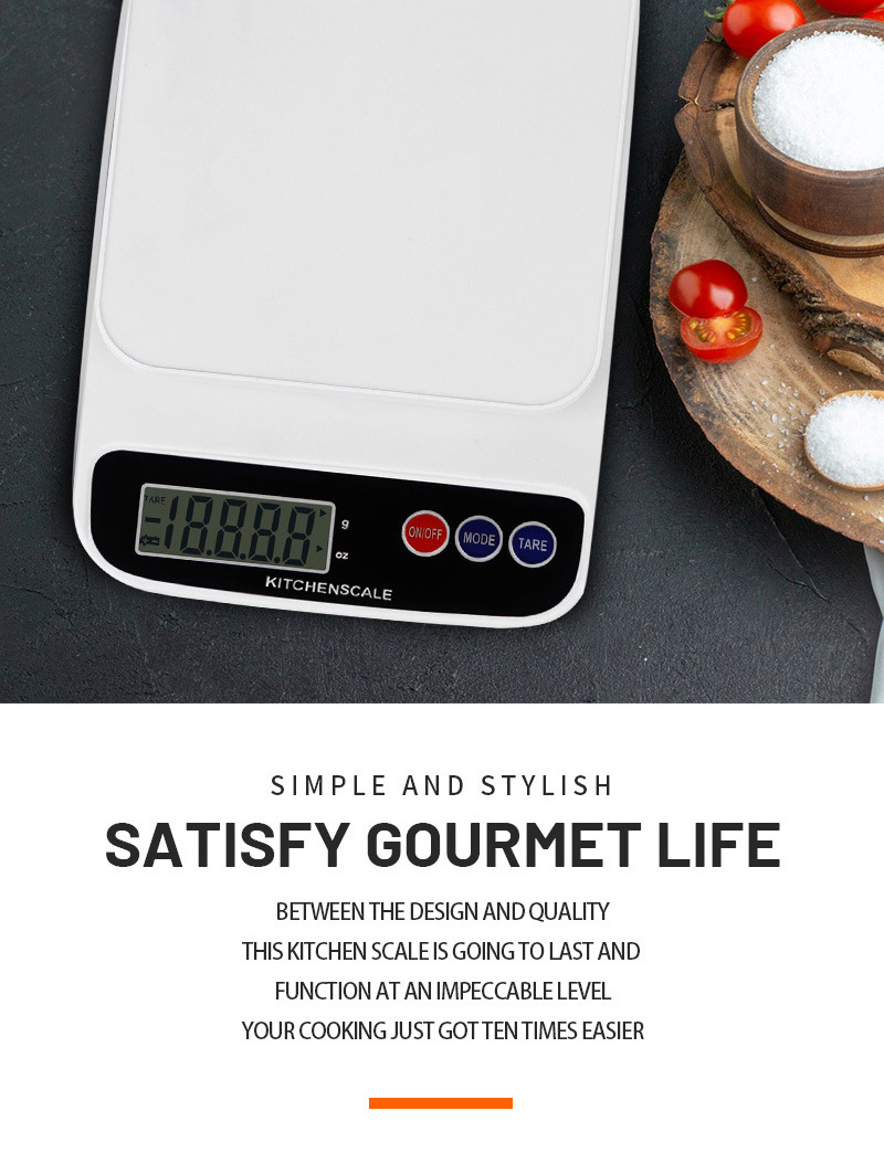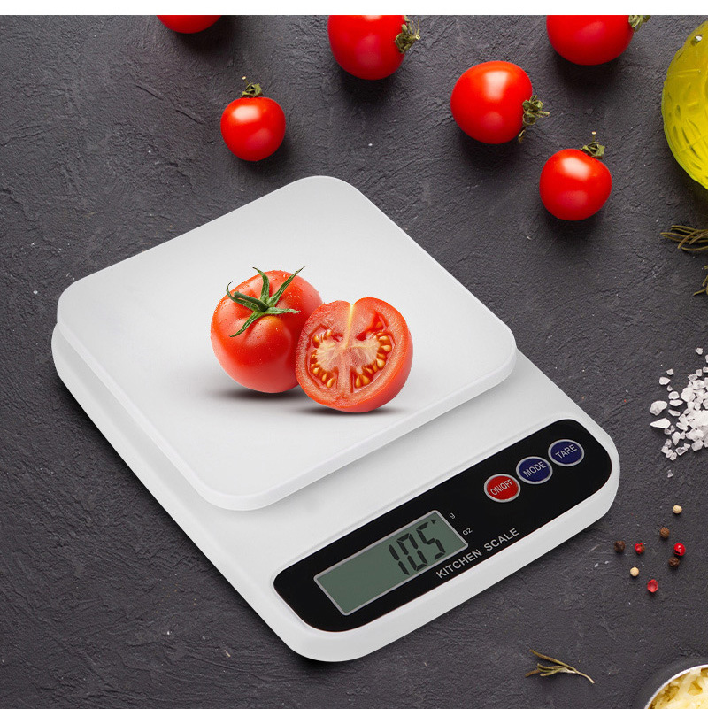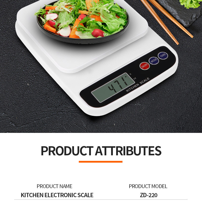 ZD-220-White 5kg/1g 10kg/1g Portable Digital Electronic Kitchen Food Scale Plastic Weight Measuring Tool with Battery Power Source